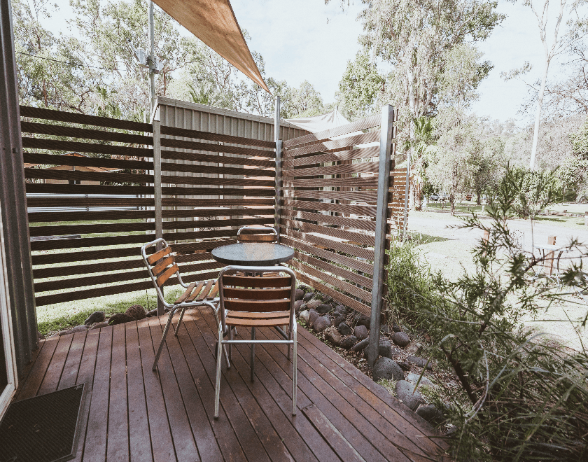 No better way to start the morning off than on your own private deck watching the birdlife and surroundings while sipping on a cup of coffee. The cabin sleeps three guests with a queen bed, single bed and ensuite bathroom and air-conditioning.