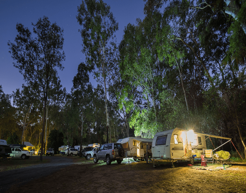 Set up on one of our spacious powered caravan or tent campsites on your next holiday, completed with portable water for you to set up your home during your stay with us. Our campsites are spacious, natural grassy sites with a mix of shaded and sunny to choose from. All our sites are located close to the camp kitchen with BBQs, gas cooktops, sinks and dining areas where you can cook a meal for the family. Communal fire pits are position through out the park and firewood is available to purchase. We also have hot showers in the amenities block and laundry facilities are available.